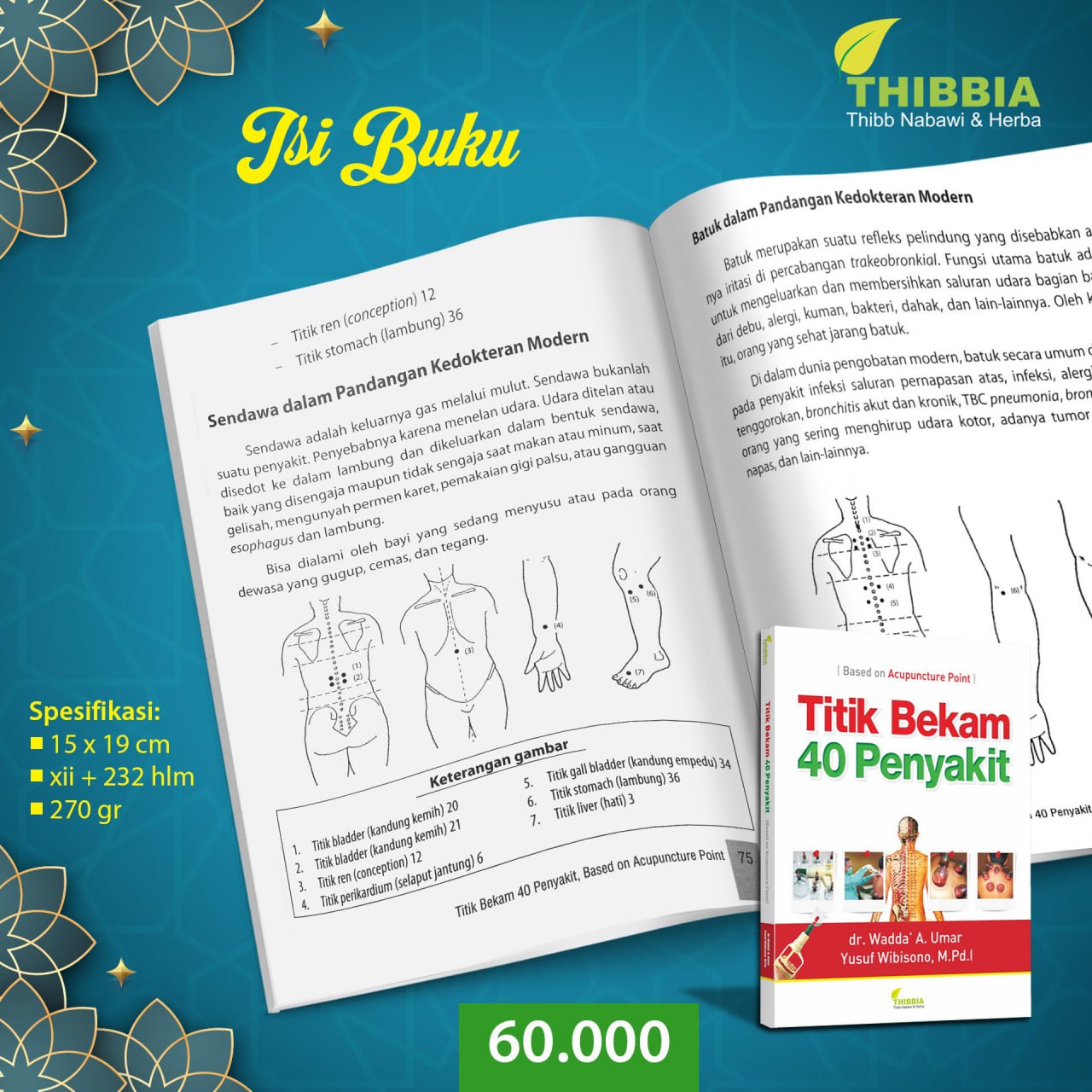 - Paparan titik bekam 40 penyakit secara jelas dan komprehensif sebagai acuan terapi dengan menggunakan titik akupuntur.