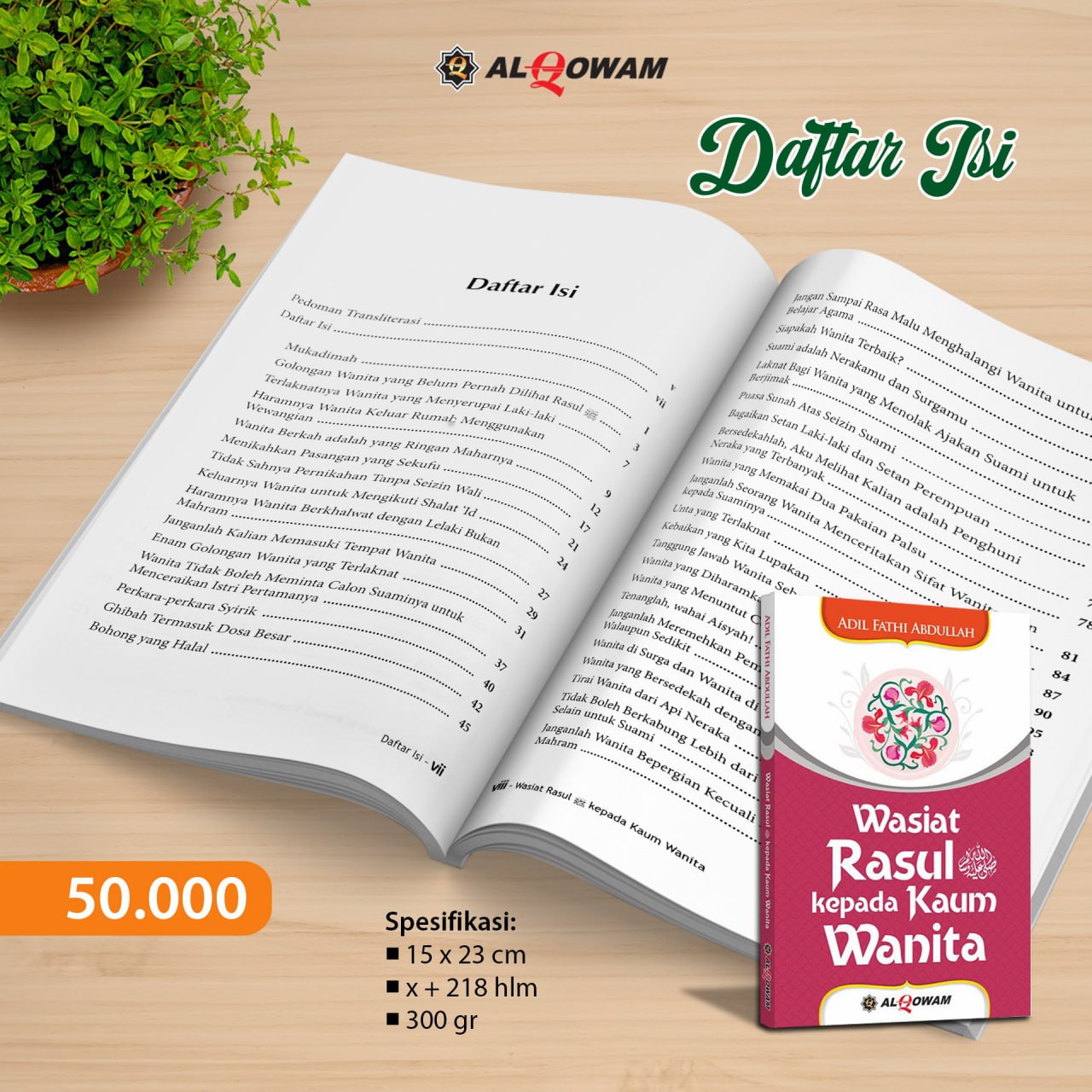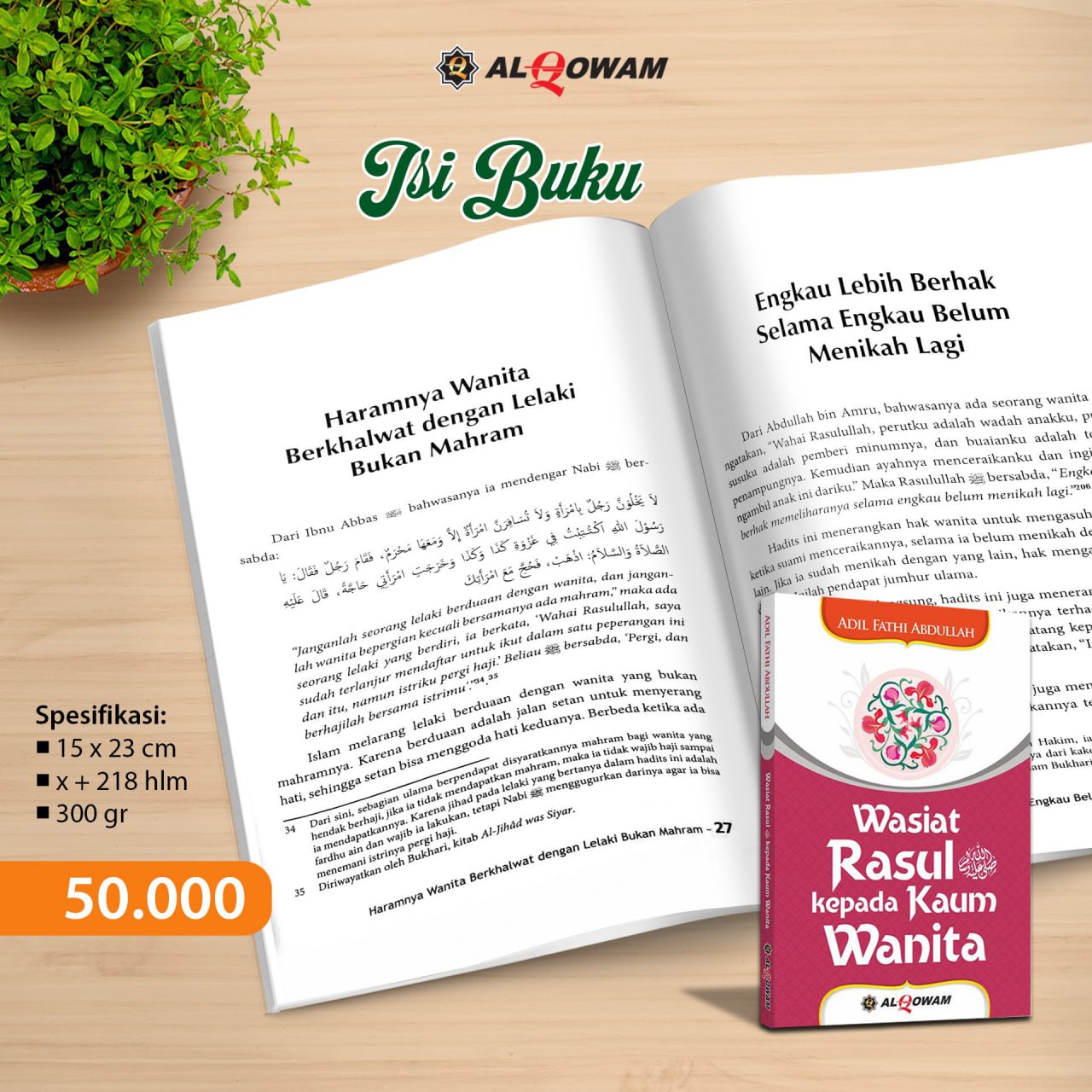 Buku ini berisi wasiat dan nasihat Rasulullah yang sangat penting bagi kaum wanita, khususnya berkaitan dengan perkara-perkara kekinian yang menyangkut mereka. Sangat mendesak untuk diketahui oleh setiap wanita yang masih bangga menyandang predikat muslimah, apalagi yang memiliki semangat untuk selalu menghiasi hidupnya dengan nilai-nilai islami.